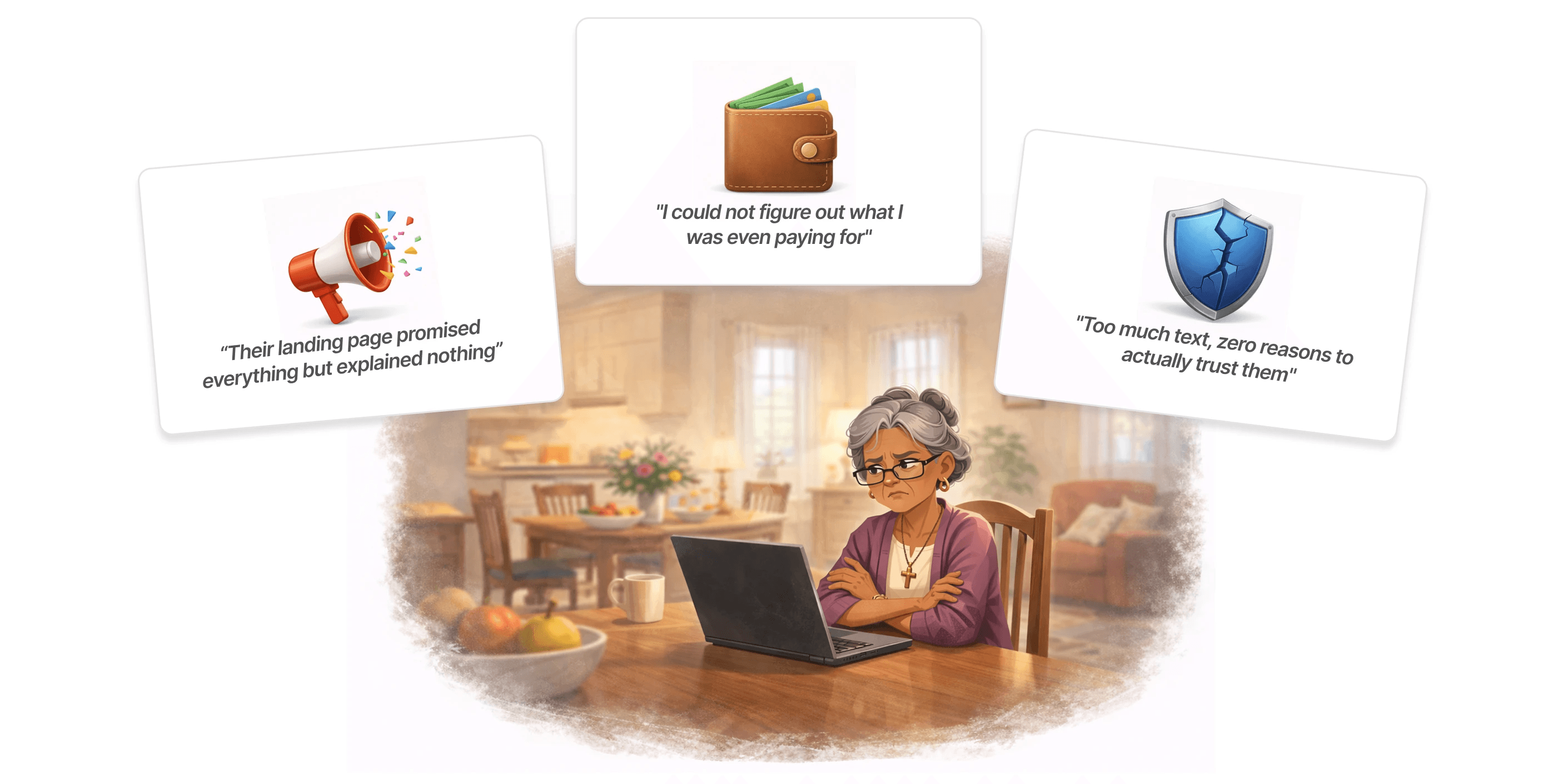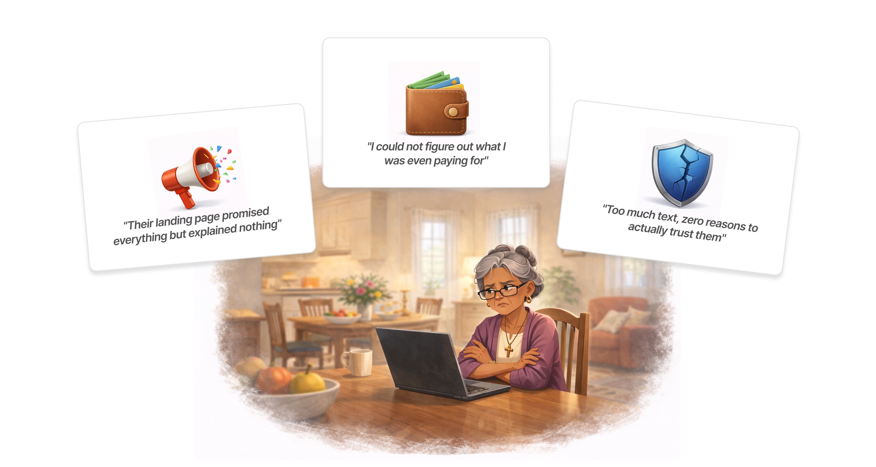 By speaking with users, we learned trust breaks through tracking, ads, and complexity. Our landing page addresses each concern upfront, building confidence through privacy-first messaging, clarity, and authentic community signals at every touchpoint.