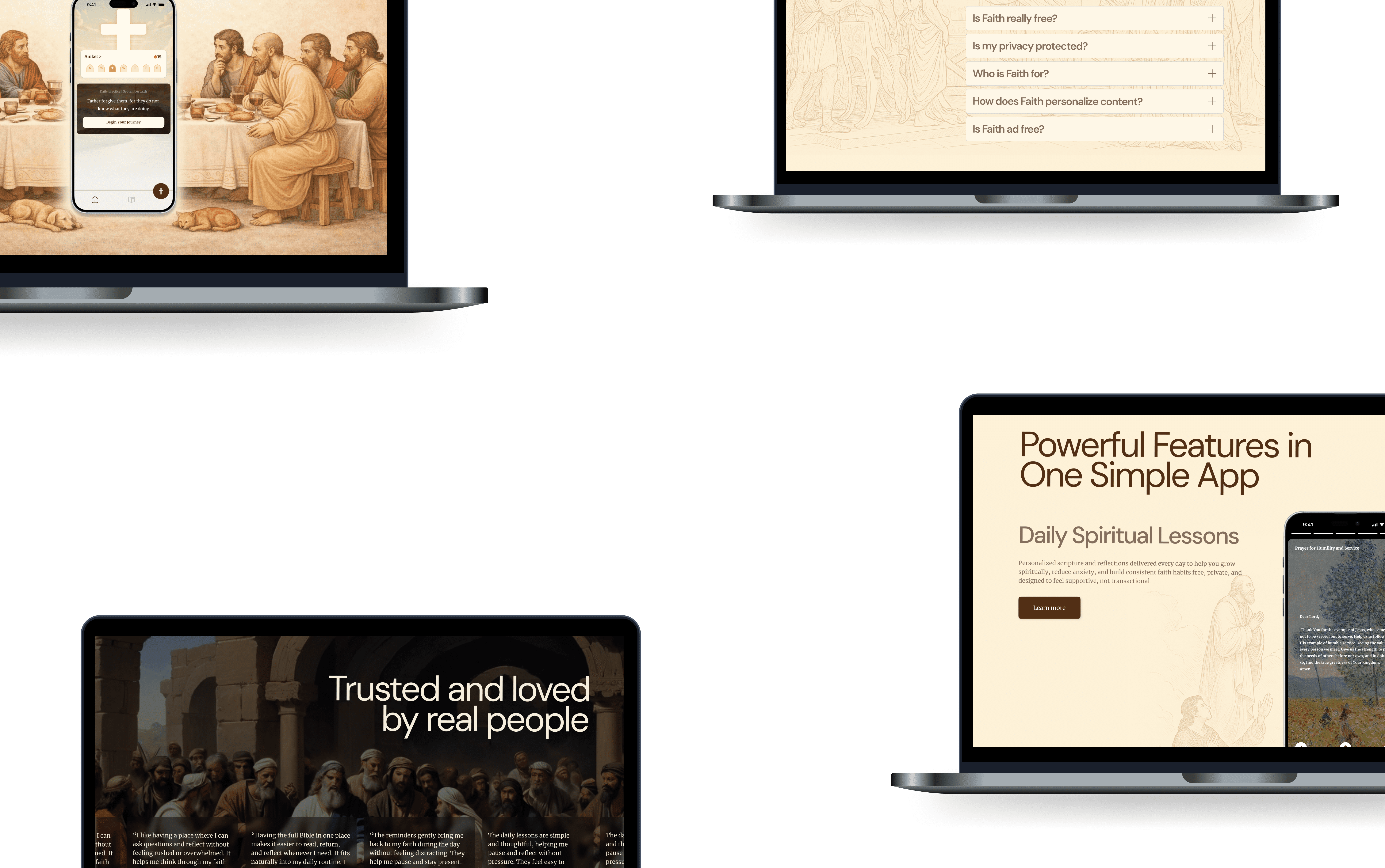 Faith is a mobile app that helps users cultivate meaningful spiritual practices through distraction-free prayer, guided reflections, and community connection. This was a capstone brief from 10K Designers to design a landing page that highlights key features and drives user downloads.